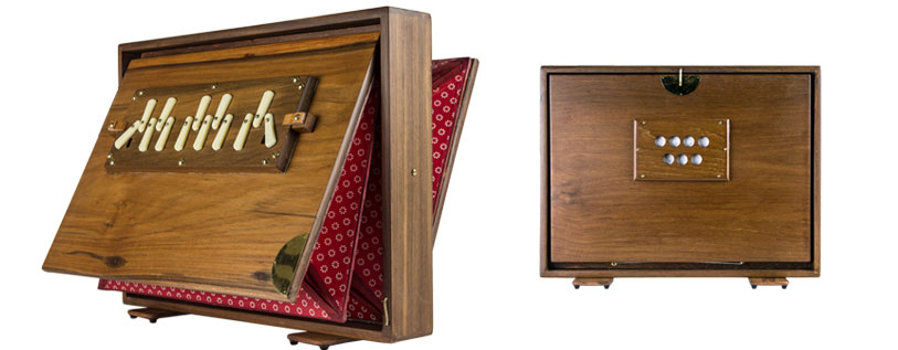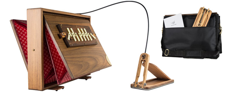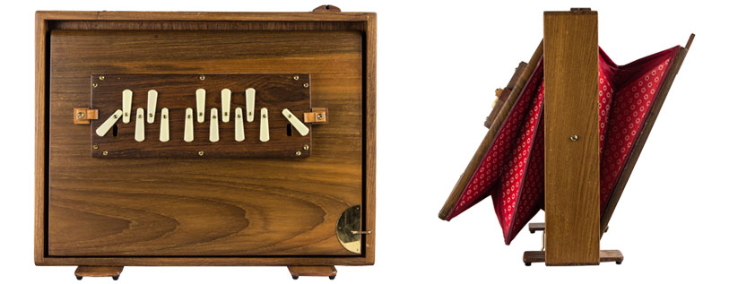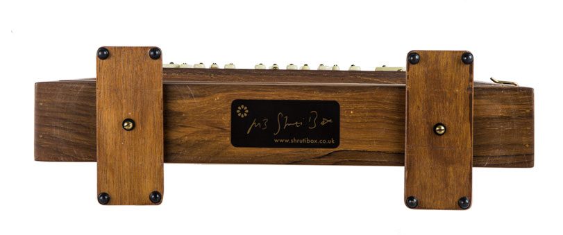Our premier Shruti Box, the M3 was developed to work seamlessly with the Bowring foot pedal, with the gigging musician in mind. The result, a larger instrument than our standard M1, with enhanced air capacity and wooden swivel feet which provide extra stability and sound insulation between instrument and floor. The M3 is a delight to play by hand or foot, offering long sustain, a smooth action when pedaling and fine control of volume – from quiet to loud. Built from reclaimed Burmese teak, a hard and durable tonewood, the M3 produces a warm, tight and rich drone with clear harmonics. This enables the player to project a sound which is audible within the mix.